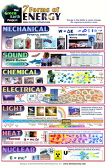 light, heat, sound, chemical, nuclear, atomic, mechanical and electric.