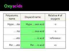 Acids with a polyatomic ion that includes oxygen (e.g., HClO3)