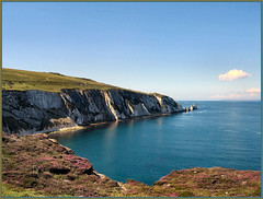 a high bank, almost perpendicular, projecting into the sea