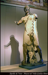 Temple of Minerva and sculpture of Apollo, Etruscan, 6th Century B.C.E., Original temple of wood, mud brick, or tufa (volcanic rock); terra cotta sculpture