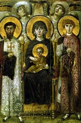 Virgin and Child between Saints Theodore and George, Byzantine, 6-7th century, Wood