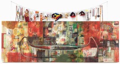 Trade (Gifts for Trading Land with White People), Native American Contemporary, 1990s, Oil and Mixed-media on Cover, Jaune Quick-to-See Smith