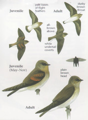 Brown legs, feet. The smallest North American swallow. Swift, erratic flight, alternating several shallow, rapid wing beats with short to long glides.