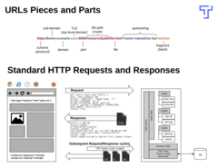 The request method along with the request path are used to route the request to the right request handler, which is a function that knows how to supply the requested resource.