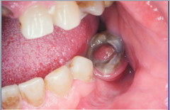 Inflamed pulp tissue within a tooth that is severely decayed or has a large open caries lesion