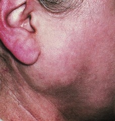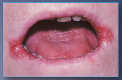 A form of thrush that appears reddened, associated with HIV/AIDS clients