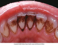 Staining that occurs from environmental factors such as tobacco use, wine, grape juice