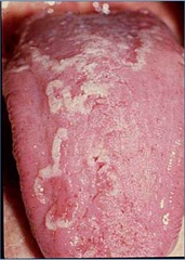 Most common fungal infection that can have several different presentations. Can be caused from dentures, steroid inhalers, antibiotic therapy, HIV+, uncontrolled diabetes