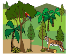 An area that has a lot of rain, usually in tropical areas with thick forest.