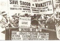 Italian immigrants charged with murdering a guard and robbing a shoe factory in Braintree, Massachusetts. The trial lasted from 1920-1927. Convicted on circumstantial evidence; many believed they had been framed for the crime because of their anarchist and pro-union activities.