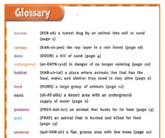 A place in the back of the book that gives the definitions or tell the meaning of certain words in the book.