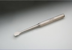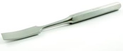 Single-ended; flat, spade-shaped tip; slightly curved blade; multiple tip widths used for scraping bone, periosteum, and soft-tissue