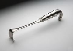 Right angled; single or double sided; hollow or open handle with finger ridges used to retract multiple layers of tissue in deep surgical sites