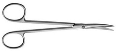 For delicate tissue dissection, curved tip; A smaller finer tipped Metz.