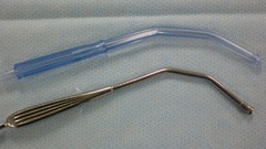 Bulbous Head; large opening; may be disposable; curved tip used for effective suction without damaging surrounding tissue; to clear operative sites to improve visualized
