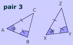 Angle side angle two pairs of congruent angles and one pair of congruent sides. (side between the pairs of angles)