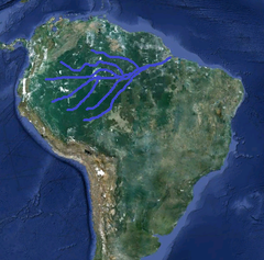 Starts in Peru and goes through Brazil. Carries more water than any other river. Flows over 4,000 miles eventually emptying into the Atlantic Ocean