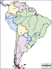 Islands at southern tip of South America dividing Chile and Argentina