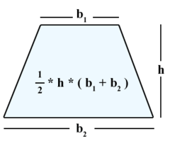 Area = Average of parallel sides X Height OR A=1/2 (b1 + b2) h