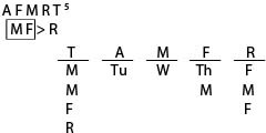 R is not scheduled for Thursday unless L is scheduled for Monday.