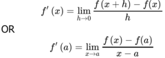 Find the slope of the tangent line to the function f at x = a. Or, find the derivative of the function at a. Or, find f' (a)