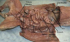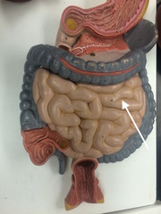 a large gland behind the stomach that secretes digestive enzymes into the duodenum. Embedded in the pancreas are the islets of Langerhans, which secrete into the blood the hormones insulin and glucagon