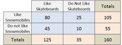 Find P(a person does not like snowmobiles, if he likes skateboards).