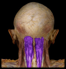 blood supply: descending branch occipital artery, deep cervical artery