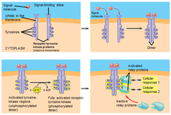 A series of steps linking a mechanical or chemical stimulus to a specific cellular response. There are four types that we studied: g-protein linked reception; hormonal reception; receptor tyrosine kinase reception; pathways using second messengers (cAMP; calcium ions).