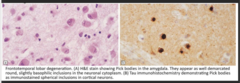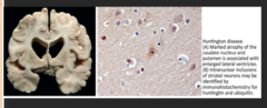 atrophy of caudate nucleus(storing an processing memories), cerebellum and putanem(aids in movement regulation) on imaging