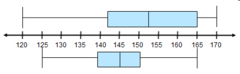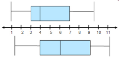 The box plots show the average wind speeds, in miles per hour, for various cities in two different countries.Which statement compares the median wind speeds for the data in the two box plots?