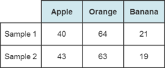 Bananas are preferred much less frequently than apples or oranges.The samples show little variation for each fruit