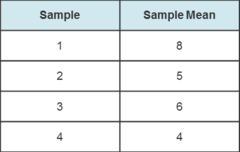 Ardem collected data from a class survey. He then randomly selected samples of five responses to generate four samples.