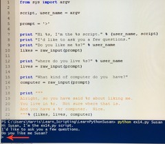 Pauses the script at the point it shows up, gets the answer from the keyboard, then continues the script. It is one of python's built-in functions Looks something like: var = raw_input("Enter_Something") Where "Enter_Something" is what the prompt is, asking you to enter some text, and var is where the text is stored Remember the %r in the prompt