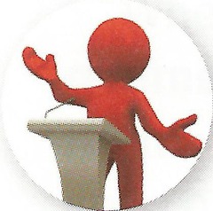 to tell something, usually to a group