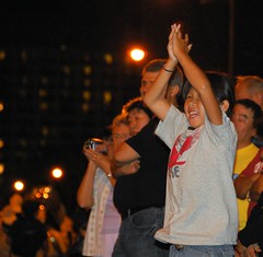 to shout approval or praise