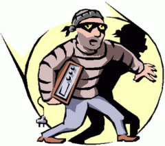 The burglar is stealing something. Stealing is a Verb because it is an action.
