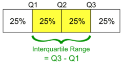 a measure of variation for a data set, which is the difference of the third quartile and the first quartile.