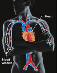 Blood vessels transport blood, which carries oxygen, carbon dioxide, nutrients, wastes, etc. The heart pumps blood.