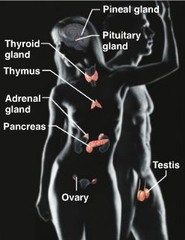 (organs: pineal gland, pituitary gland, thyroid, thymus, adrenal, pancreas, testis, and ovary)