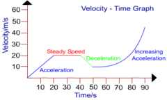 on a v-t graph, if the diagonal line goes up or down (not toward the x-axis), the velocity is
