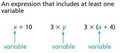 A mathematical phrase that includes one or more variables.