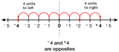 A number that is the same distance from zero on the number line as a given number, but lies in the opposite direction.