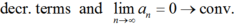 lim as n approaches zero of general term = 0 and terms decrease, series converges