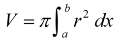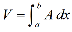 ∫ A(x) dx over interval a to b, where A(x) is the area of the given cross-section in terms of x