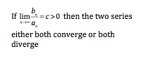 if lim as n approaches ∞ of ratio of comparison series/general term is positive and finite, then series behaves like comparison series