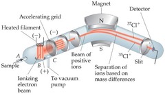 an instrument used to determine the relative masses of atoms by the deflection of their ions on a magnetic field