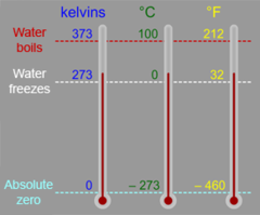 the temperature scale in which the freezing point of water is 273 K and the boiling point is 373 K; 0 K is absolute zero