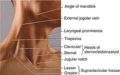 Have the pt supine and have them contralaterally rotate their head 45 deg. After finding the C1 TP, the C2 TP is the first one you feel directly down from the ear, posterior to the SCM. C2-C7 form a "T" from the mastoid process to the clavicle. Move in a zig-zag pattern from TP to facet joint as you go down; C2/C3 facet will be just posterior and inferior to the C2 TP, then C3 will be just anterior and inferior to the C2/C3 facet, and so on. The facets are posterior to the TPs. C7 is very difficult if not impossible to feel. Mobilizations are done at the facets, not the TPs (if you mobilize at the TP where muscular attachments are, it can be too painful).