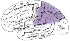 either of the paired lobes of the brain at the top of the head, including areas concerned with the reception and correlation of sensory information.